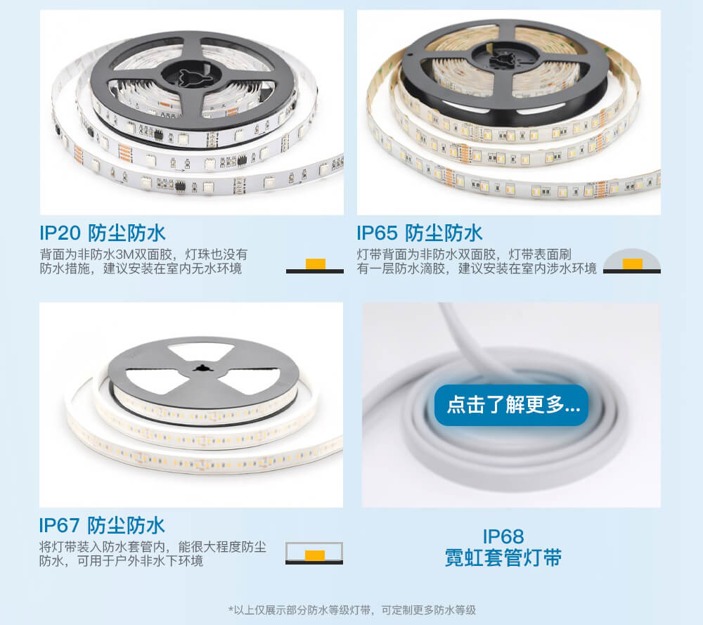 不同場景為您匹配對應防護等級,量身打造最匹配的LED燈帶