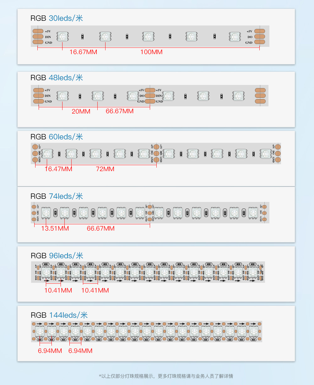 LED每米燈珠數量 12leds 18leds 30leds 48leds 60leds 90leds 120leds 126leds 144leds …